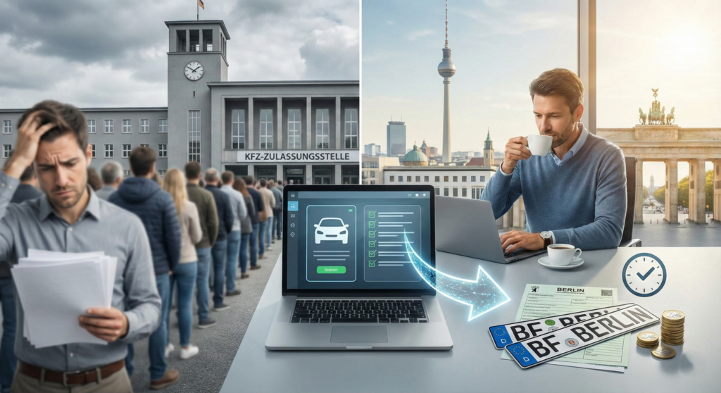 Die KFZ-Zulassung in Berlin kann schnell zu einem zeitaufwendigen und stressigen Prozess werden. Lange Wartezeiten, kurzfristige Termine und fehlende Unterlagen